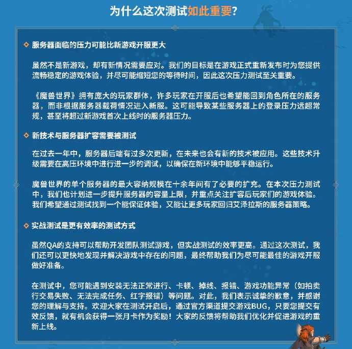 《魔兽世界》国服回归技术测试服务器每日开放时间一览